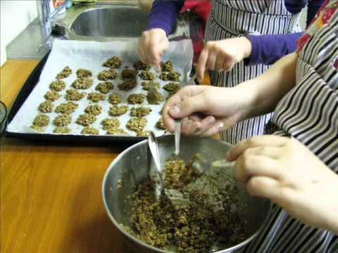 ENG- Children of form 4 from Torma school, Estonia with their teacher Külli making sweet biscuits called oatflake cakes.